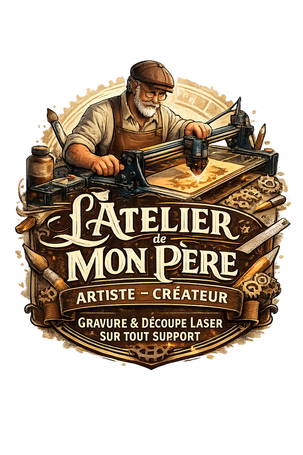 Artiste créateur : gravure et découpe laser sur tous supports (bois, verre, métal, aluminium, et bien d’autres), sculpture métal et impression 3D.